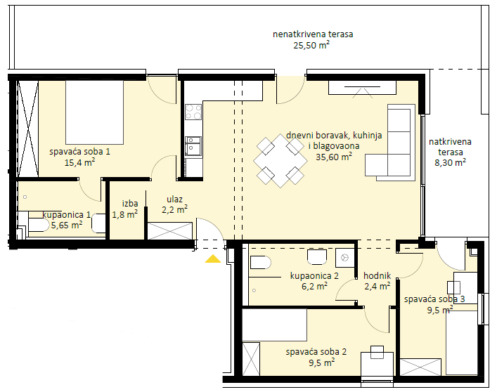 izlaz iz svih glavnih prostorija. Ova terasa savršeno upotpunjuje životni prostor, nudeći
