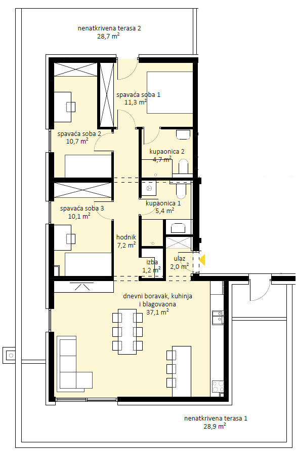 kuhinjom i prostranom blagovaonicom. Zahvaljujući ovakvom rasporedu, prostor je