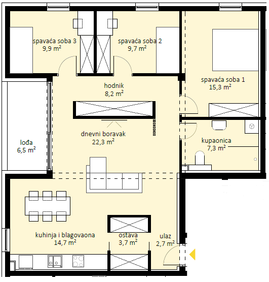 strane gdje se nalazi ulaz te sa strane gdje je kuhinja što doprinosi pružanju vrijednosti